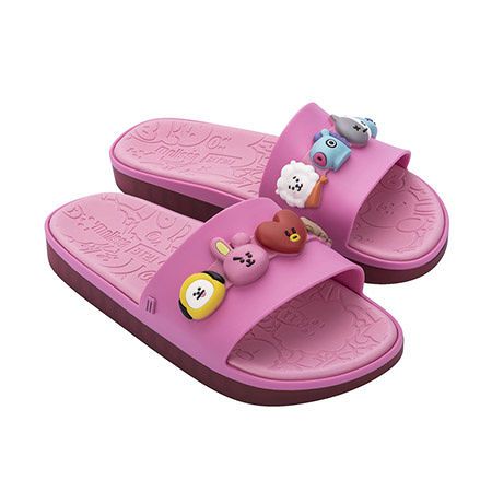 Os personagens do Planeta BT finalmente chegam ao universo Melissa. A Melissa Beach Slide Next Gen + BT21 recebe estampas dos personagens, sendo uma proposta superdivertida sem perder o conforto e a versatilidade.