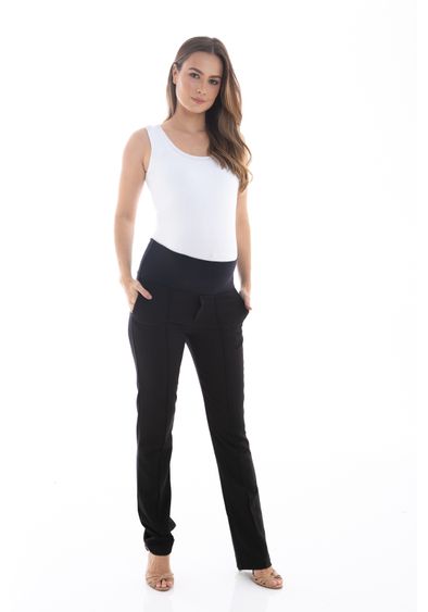 Calça com modelagem alfaiataria e detalhes em nervura. Proporciona conforto e visual chique, com cós de suplex dando a possibilidade de ajuste em todas as fases da barriguinha da gestante.