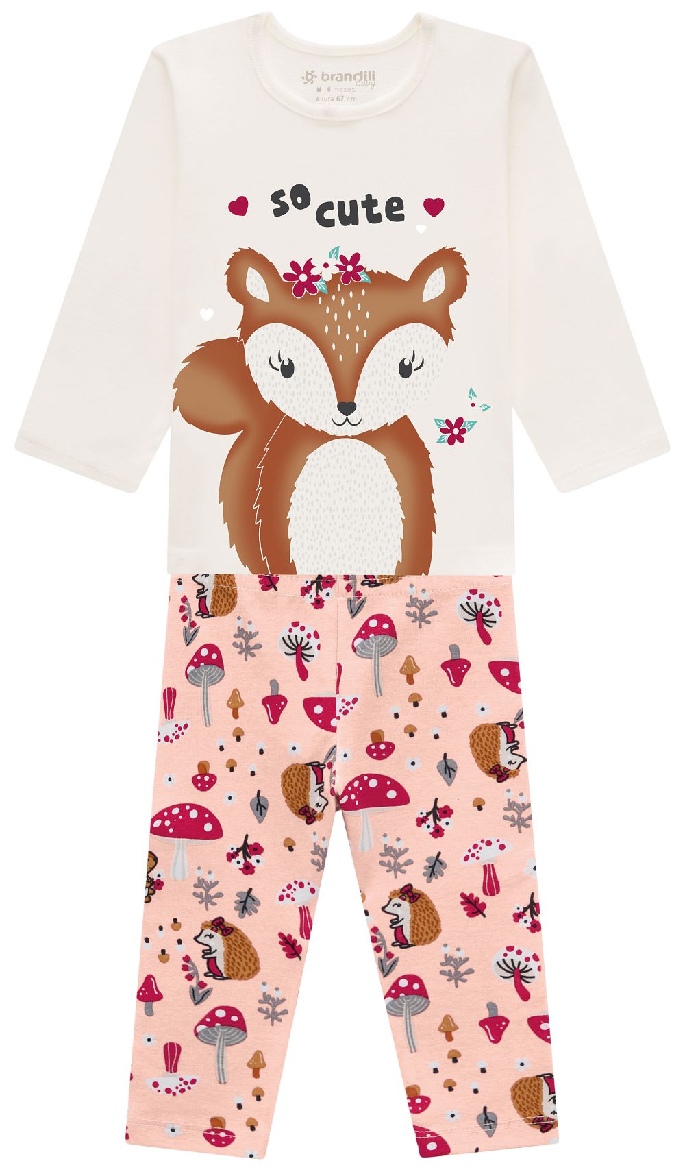 Conjunto infantil menina composto por Blusa Malha e Calça Legging Cotton , conta com estampa de Esquilo, possui as mangas longas com punhos e barra em ribana e a gola redonda, a calça legging é confeccionado em molecotton. Aposte nesse look fofo e cheio de detalhes para usar nos dias mais frios!