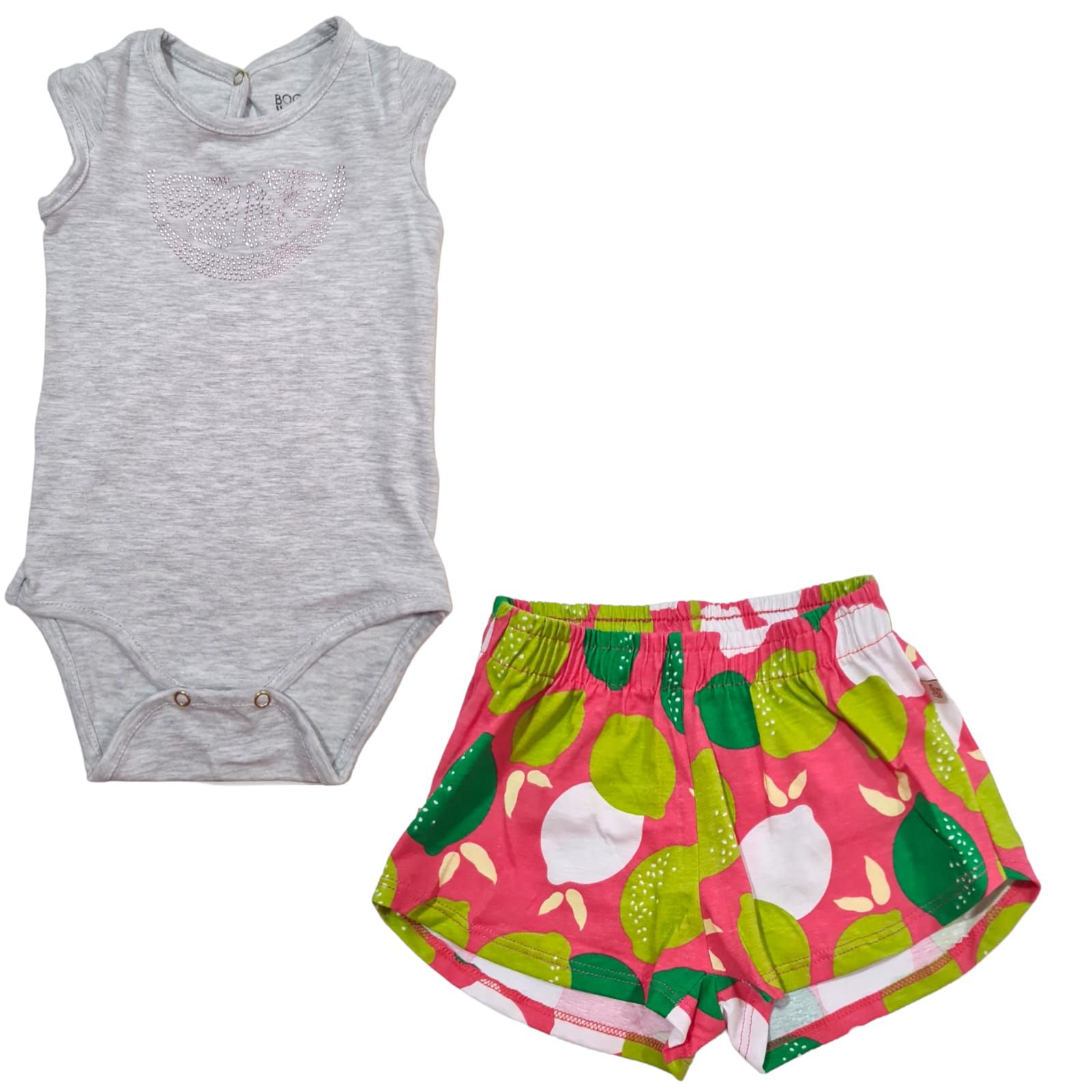 Esse conjuntinho é perfeito para o dia a dia das pequenas. Fresquinho e confortável.  O Body confeccionada em meia malha e short em cotton estampado. Possui botão de pressão no body, para maior facilidade ao vestir!