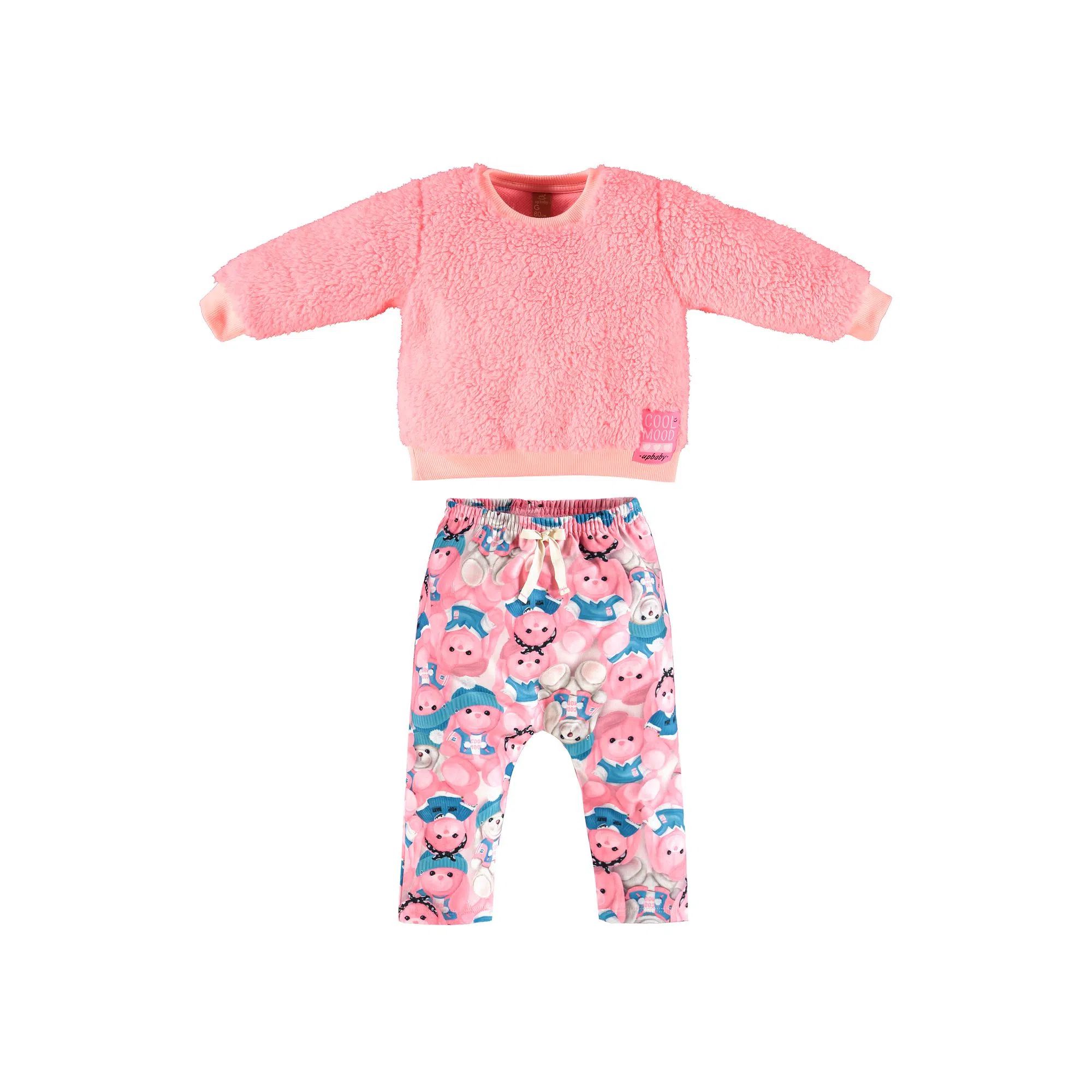 O conjunto para bebê menina é a escolha perfeita para manter a sua pequena quentinha e estilosa. O blusão em pelo sintético é super macio e confortável, possui gola redonda, punhos e barra. A legging em molecotton estampada é perfeita para manter as perninhas quentes, com elástico na cintura, cadarço decorativo e estampa sublimada de ursinhos adoráveis. O interior da peça possui um leve peluciado, oferecendo ainda mais conforto para a sua princesa.