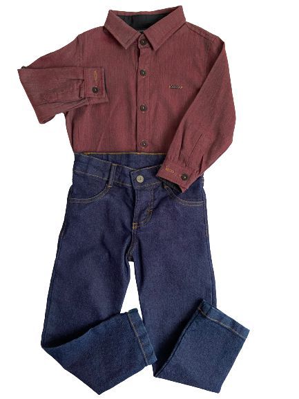Conjunto de jaqueta conforto com forro de microsoft e calça jeans AZUL MARINHO - 11857 Camisa: 96% ALGODAO 4% ELASTANO FORRO: 100% POLIESTER CALCA: 91% ALGODAO 7% POLIESTER 2% ELASTANO