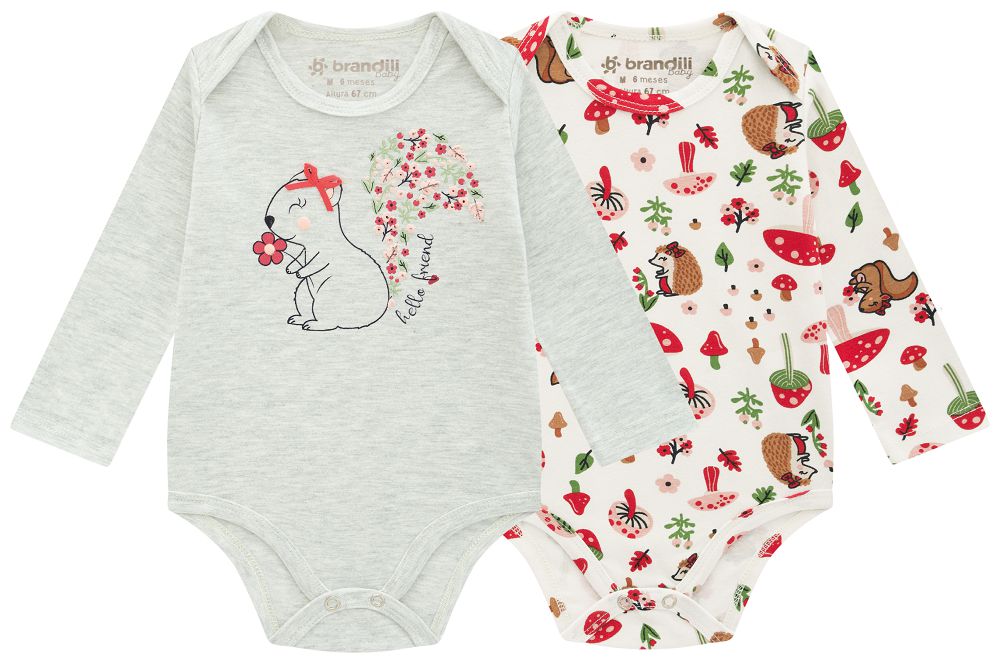 Kit de bodies bebê menina confeccionado em cotton com estampa, possuem as mangas longas, gola redonda com sobreposição e fechamento entre pernas por botões de pressão. Aposte nessa opção que é indispensável no guarda-roupas da sua bebê!