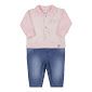Macacão ROSA PASTEL longo de plush com pelo bordado de carinha feliz e jeans