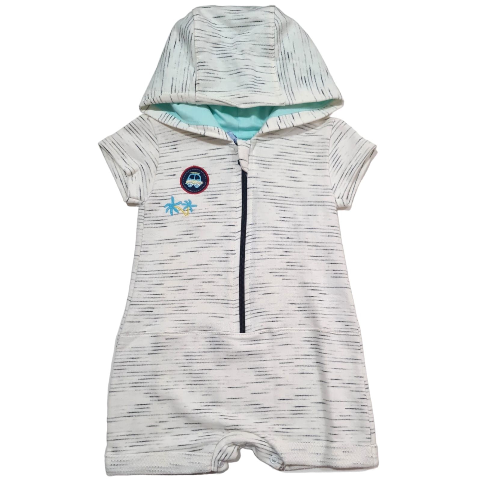 :Macaquinho para bebê em malha, na cor mescla.Macaquinho possui abertura entre as pernas e Ziper inteiro, para facilitar vestir.Composição:88% Algodão 12% Poliéster