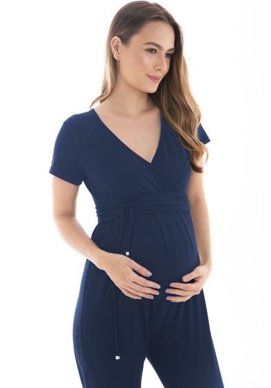 Funcionalidade é o termo certo para este macacão, com recorte que valoriza o busto, sem falar da facilidade de amamentação!