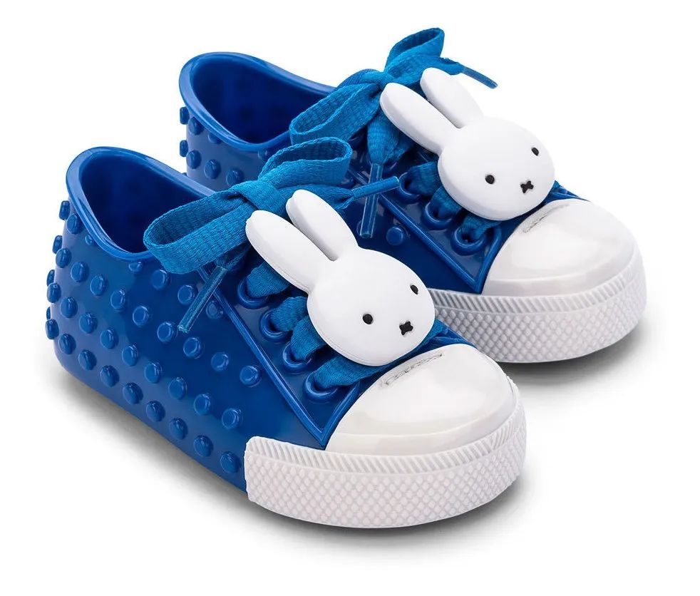 A coelhinha mais amada por crianças e adultos do mundo todo chega à Melissa para uma collab apaixonante. Miffy é uma personagem criada pelo ilustrador e escritor neerlandês Dick Bruna, em 1955, que inspirou o desenho animado Miffy & Friends. Na nova collab, o shape versátil Mini Melissa Polibolha recebe aplique frontal da personagem em plastisol, além de estampa exclusiva na palmilha, para os pequenos viverem grandes aventuras com muito estilo e conforto.