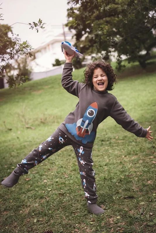 Pijama foguetes infantil de soft - Estampa brilha no escuro