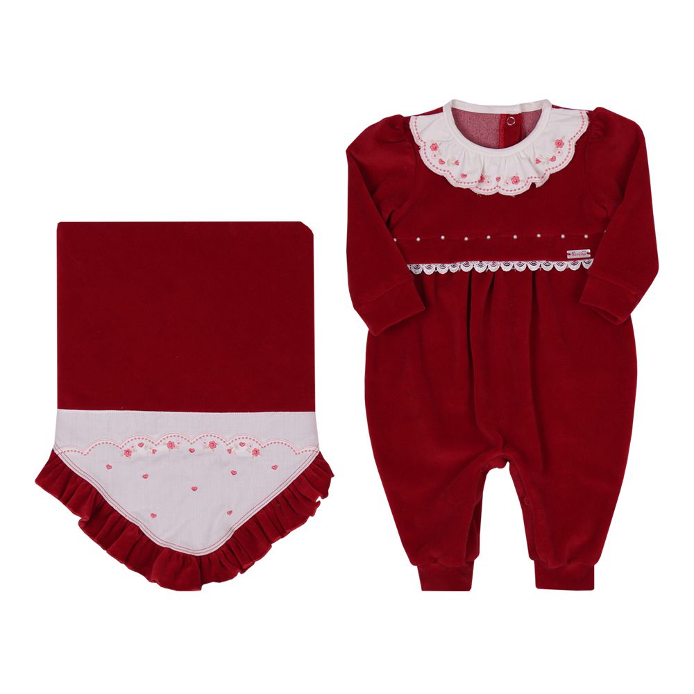 Saída maternidade VERMELHO de plush com babado glamour , com perolas e renda 11645
