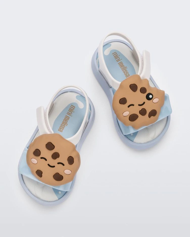 Melissa Jump que, desta vez, embarcou em uma viagem por um mundinho doce e colorido, repleto de fofura. Os doces que mais amamos ilustram as sandálias em três versões apaixonantes: uma com estampa de cookies na palmilha e pedacinhos de biscoito no cabedal, outra com aplicação de cookie em plastisol no cabedal e a terceira com aplicação de cupcake em plastisol, também no cabedal, além da estampa de chocolate granulado na palmilha. É um modelo lúdico, colecionável e repleto de detalhes, que encanta não somente as pequenas, mas também os papais.