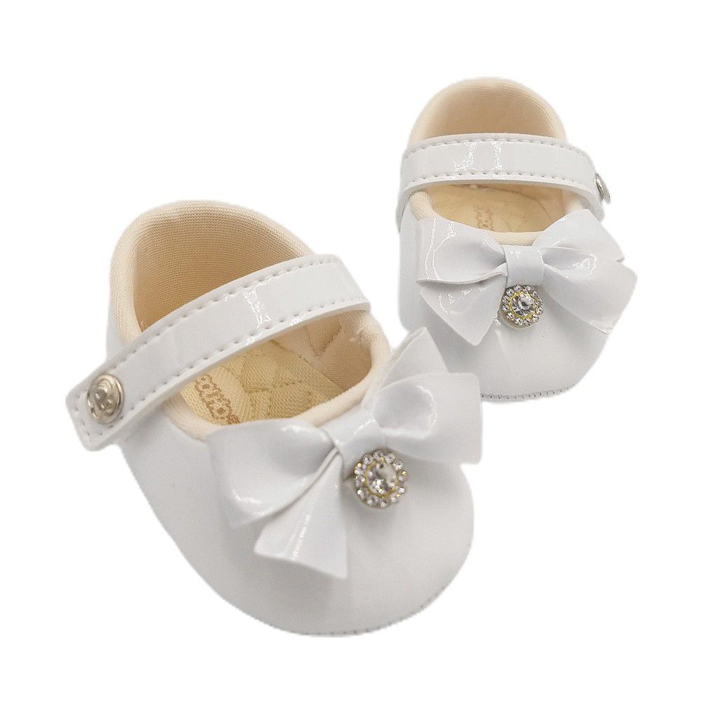 O sapato de bebê Pampili foi criado pensando no batizado, um momento especial, único e muito importante para muitas mamães. Feito em material sintético metalizado extremamente flexível e leve, todo na cor Branco com laço delicado no cabedal. Seu forro é feito em tecido, bem macio e confortável para cuidar com muito carinho dos pequenos pezinhos. Calce fácil com fecho através de velcro.